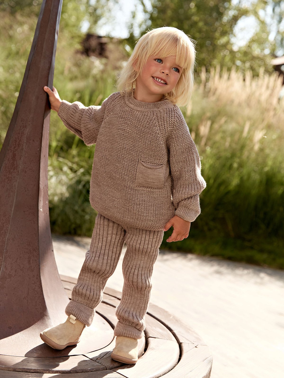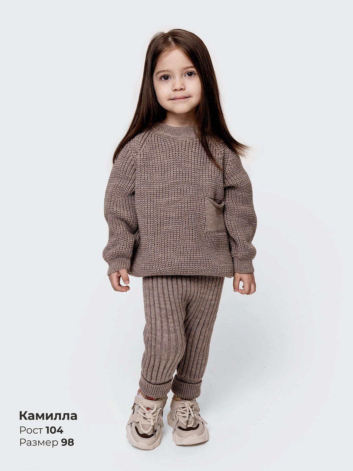 Вязаные брюки «Твист» отлично сочетаются со свитером из той же коллекции — создайте уютный и стильный образ для вашего малыша! Идеальны для детского сада, прогулок и домашнего уюта."