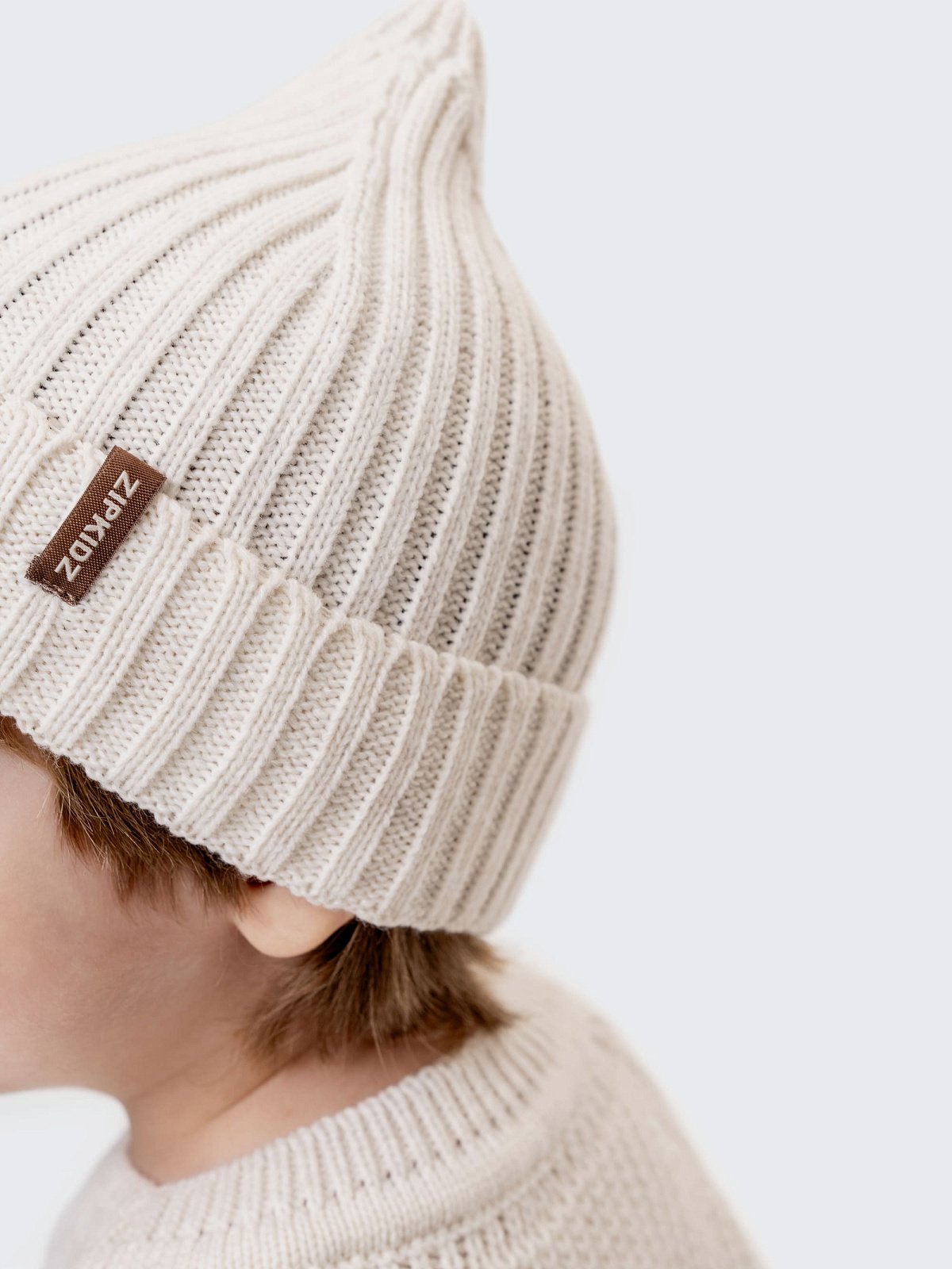 "Вязаная шапка «Твист»Стильная и уютная вязаная шапка «Твист» — идеальное решение для прохладных дней. Мягкий акрил (100%) делает её комфортной и безопасной даже для самой чувствительной детской кожи. Шапка хорошо тянется, плотно прилегает к голове и не сползает во время активных игр, обеспечивая тепло и защиту от ветра.