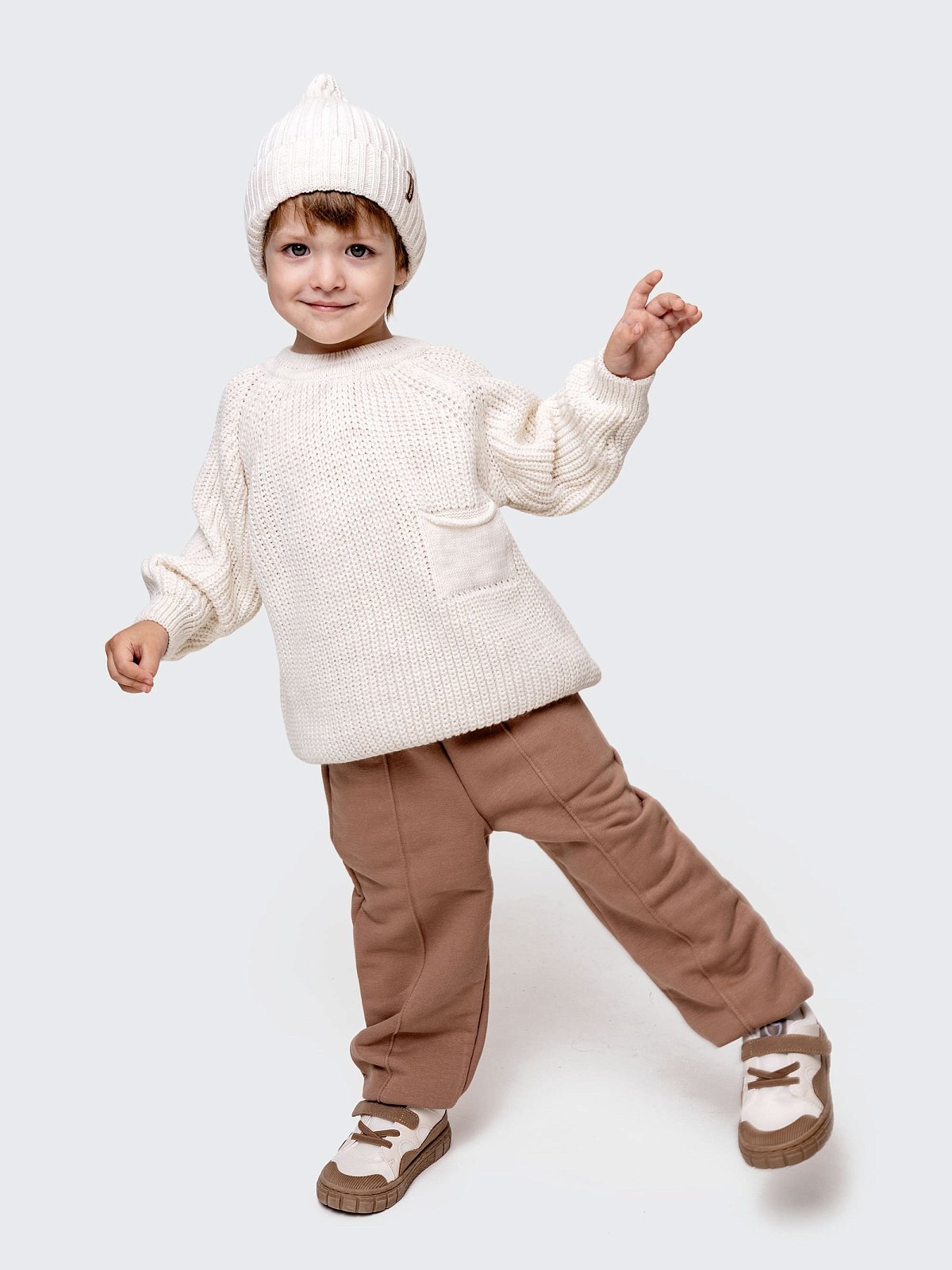 Модель выполнена в спокойных, универсальных оттенках — бежевый, молочный, какао. Такая цветовая палитра подойдёт как девочкам, так и мальчикам, легко сочетается с верхней одеждой и другими элементами гардероба.