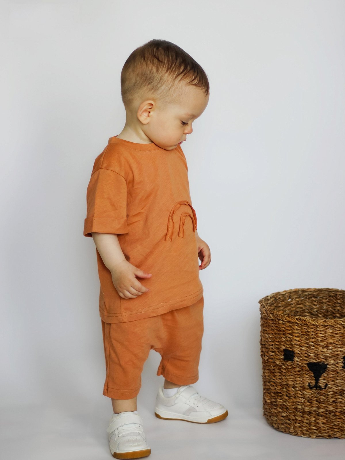 Летний трикотажный костюм из 100% натурального хлопка.В комплекте: хлопковая футболка и трикотажные шорты.