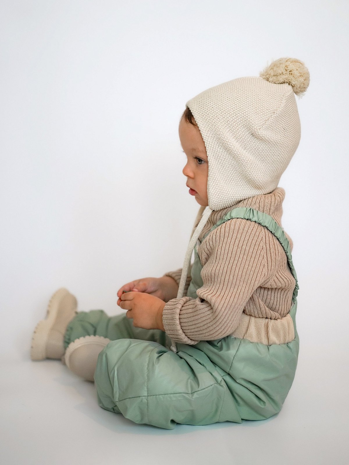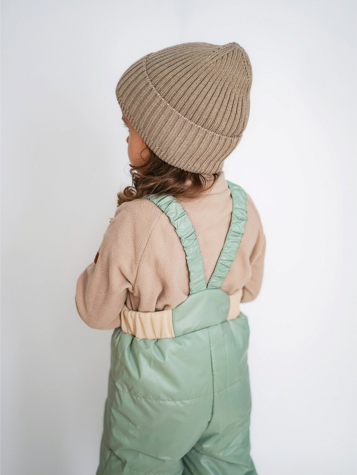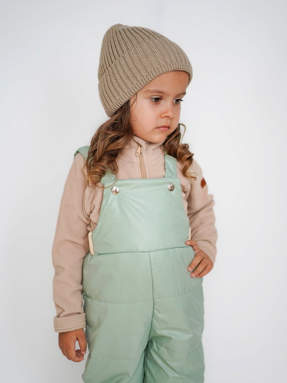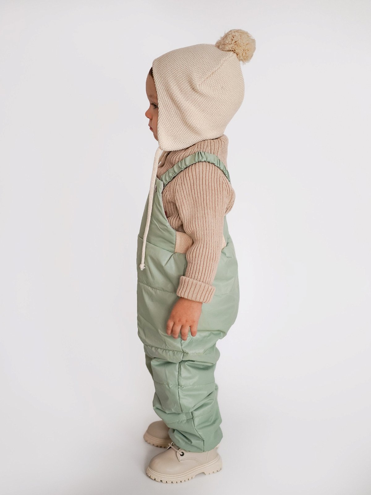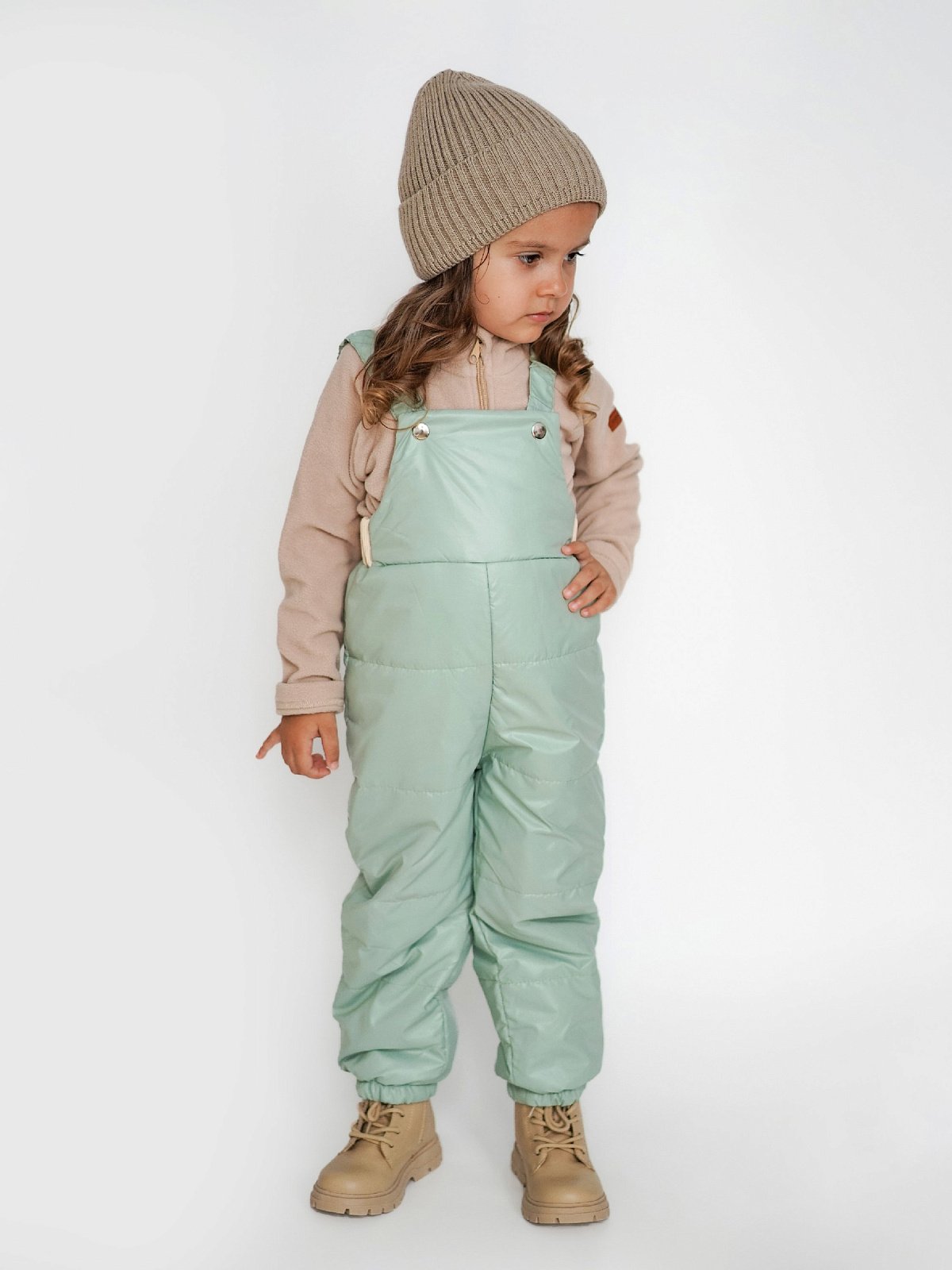 Полукомбинезон имеет подтяжки с резинкой на заклепках, которые надежно фиксируют брюки, но не сковывают движение активного малыша.