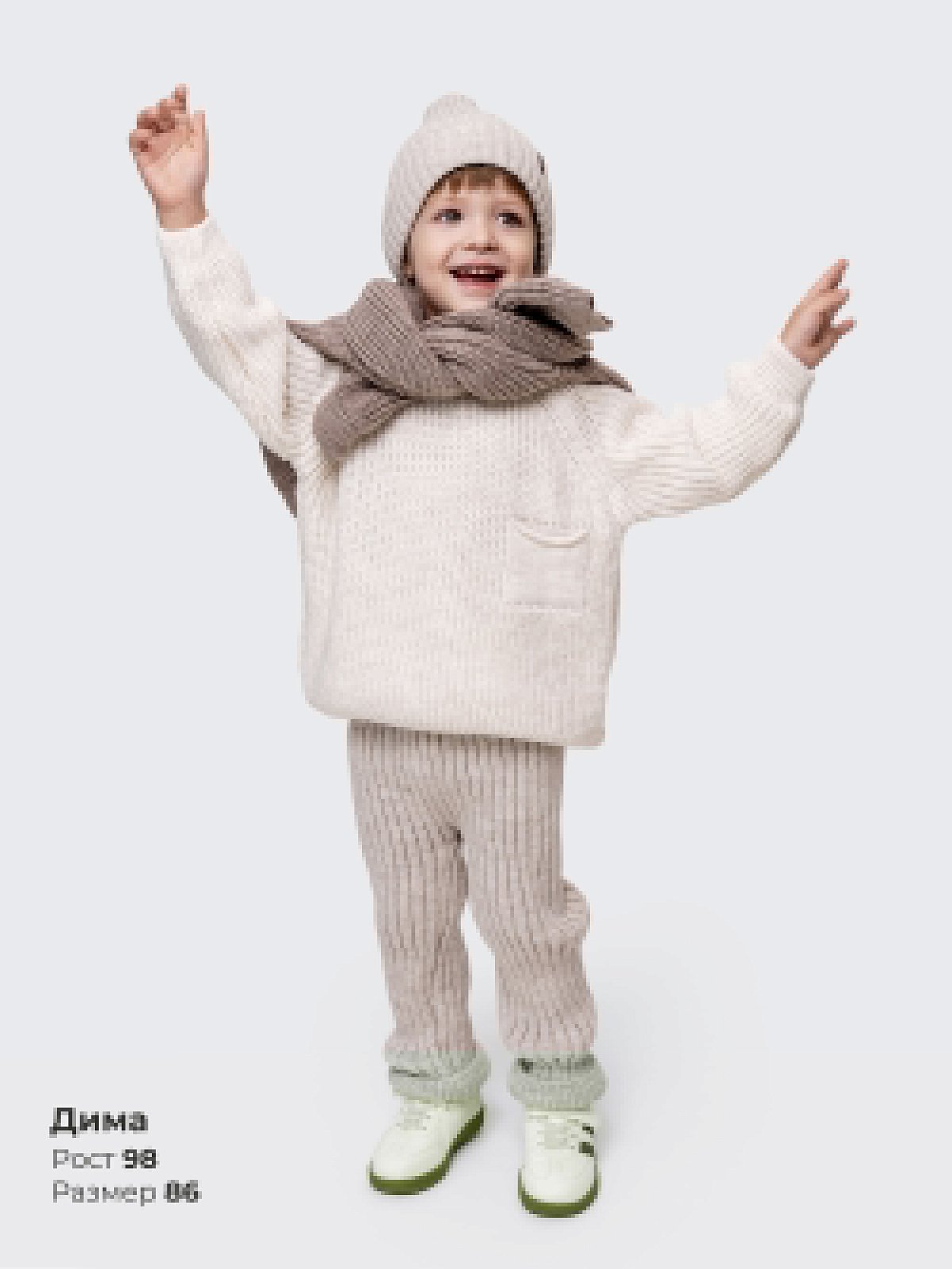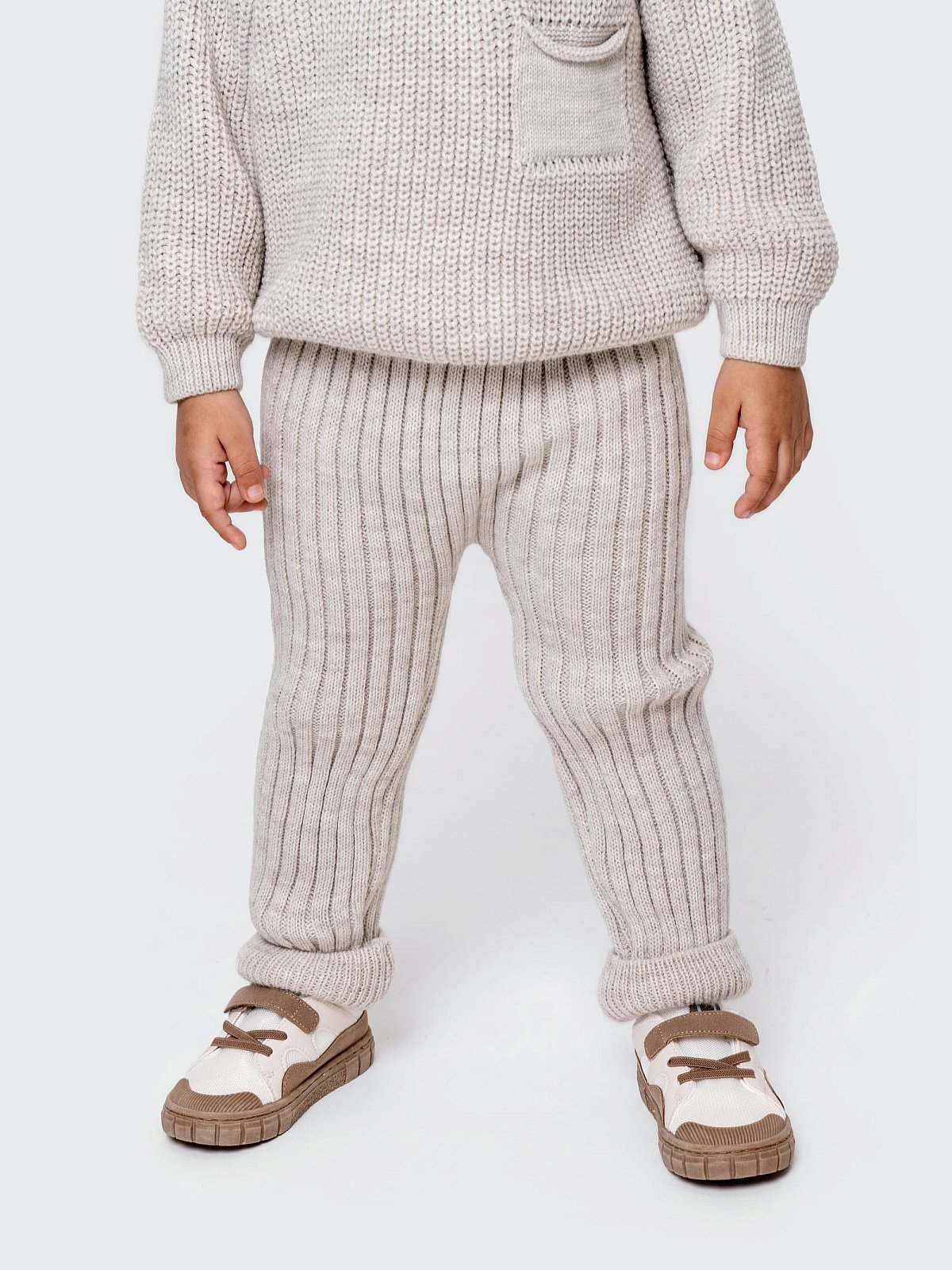 Вязаные брюки «Твист» отлично сочетаются со свитером из той же коллекции — создайте уютный и стильный образ для вашего малыша! Идеальны для детского сада, прогулок и домашнего уюта."