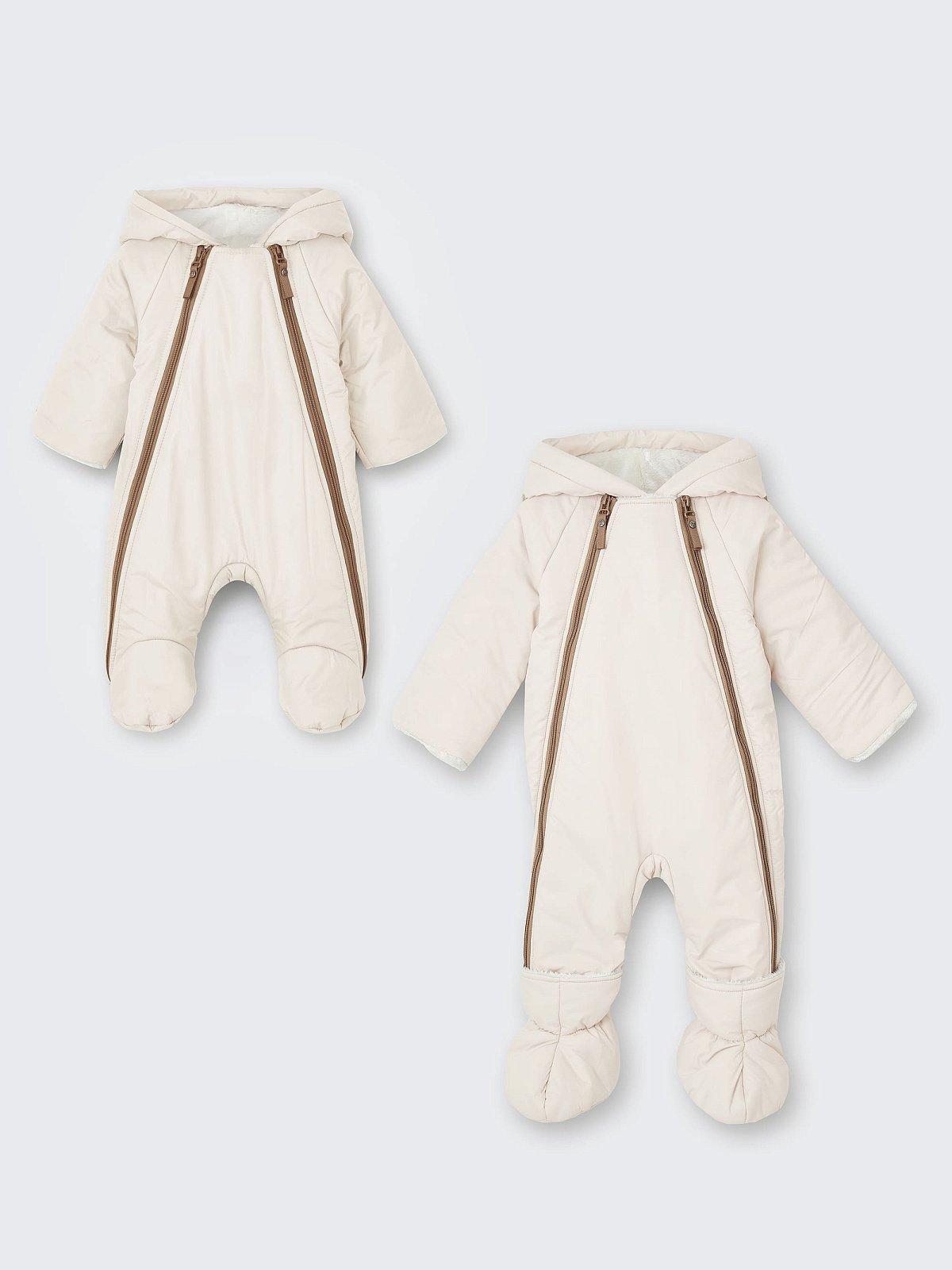 Комбинезон «Аляска» — теплый зимний комбинезон для малышей от 3 до 12 месяцев. Изготовлен из мембранной ткани с утеплителем из алполюкса и мягкой подкладкой из вельбоа, он защищает от холода, ветра, снега и дождя при температуре от -15°C до +5°C. Две молнии до низа облегчают надевание, а кармашки на рукавах позволяют открывать или закрывать ручки. Размеры 74-80 дополнены съемными пинетками.