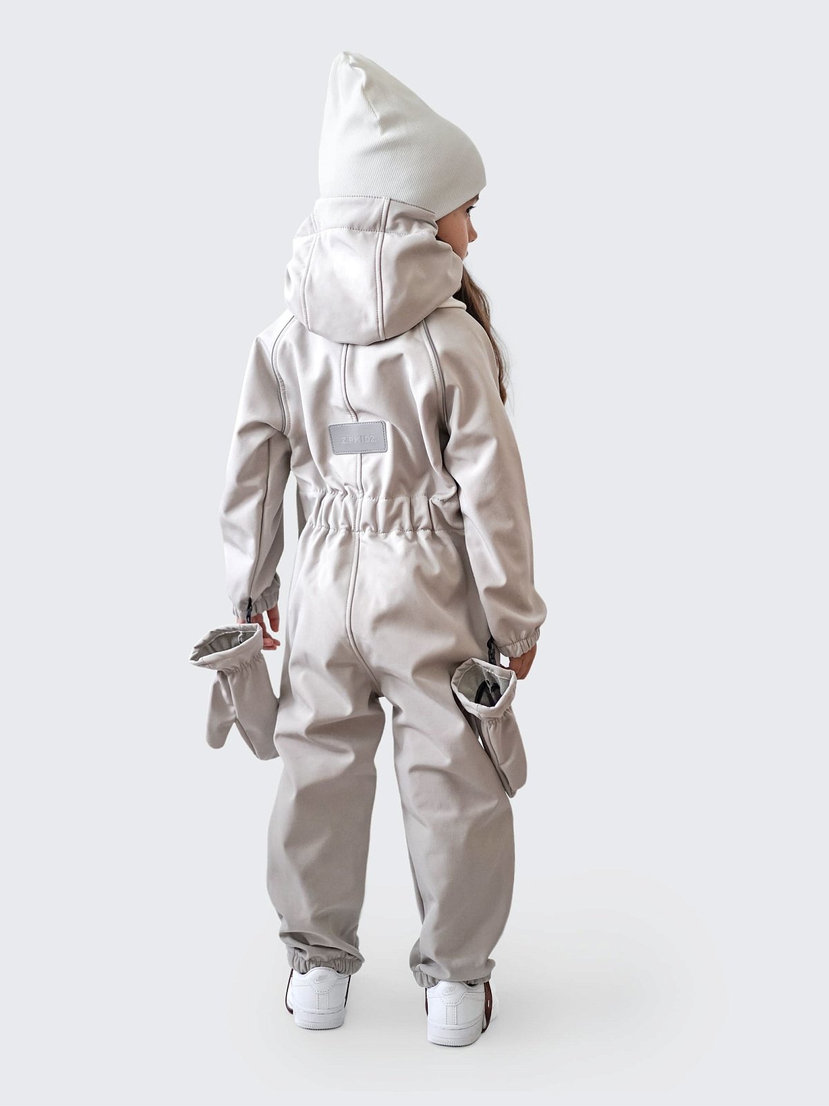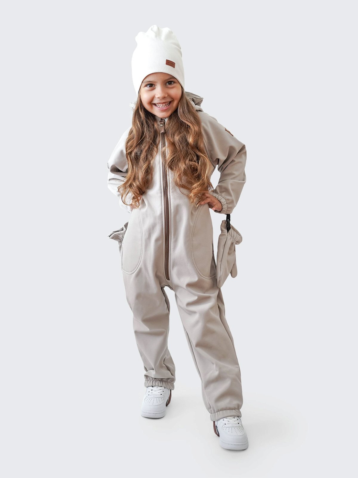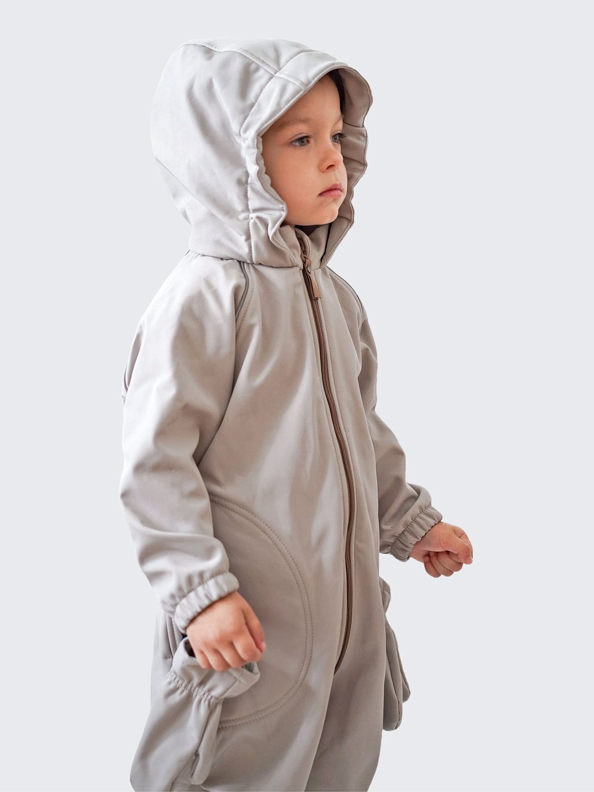 Комбинезон из софтшелла New — практичная одежда для детей от 1 до 10 лет. Изготовлен из многослойного софтшелла с флисовой подкладкой, он защищает от ветра, дождя и холода в диапазоне температур от +5°C до +20°C. Удобные подтяжки, штрипки и варежки, крепящиеся к рукавам, делают его комфортным для повседневного использования.