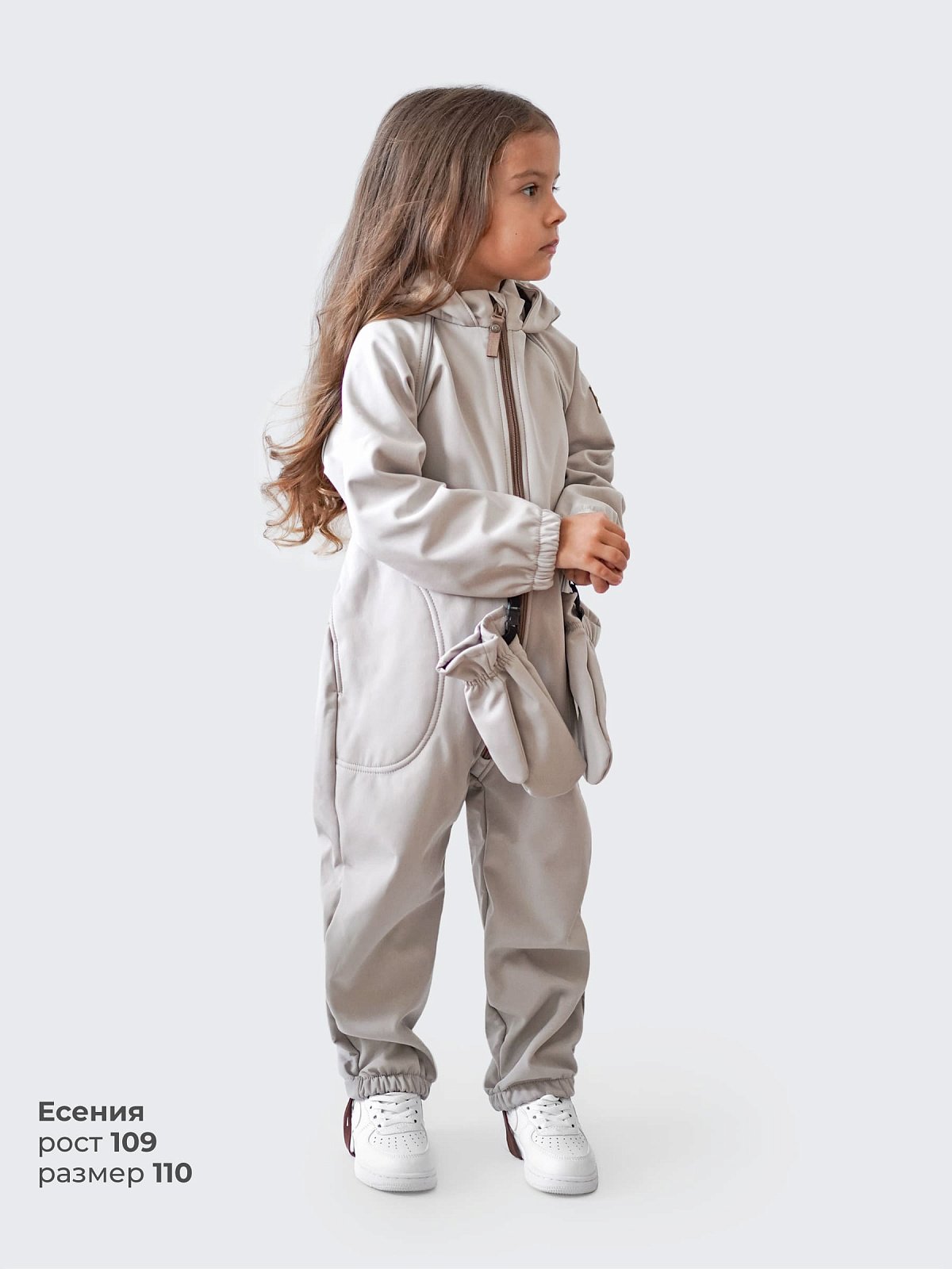 Комбинезон из софтшелла New — практичная одежда для детей от 1 до 10 лет. Изготовлен из многослойного софтшелла с флисовой подкладкой, он защищает от ветра, дождя и холода в диапазоне температур от +5°C до +20°C. Удобные подтяжки, штрипки и варежки, крепящиеся к рукавам, делают его комфортным для повседневного использования.