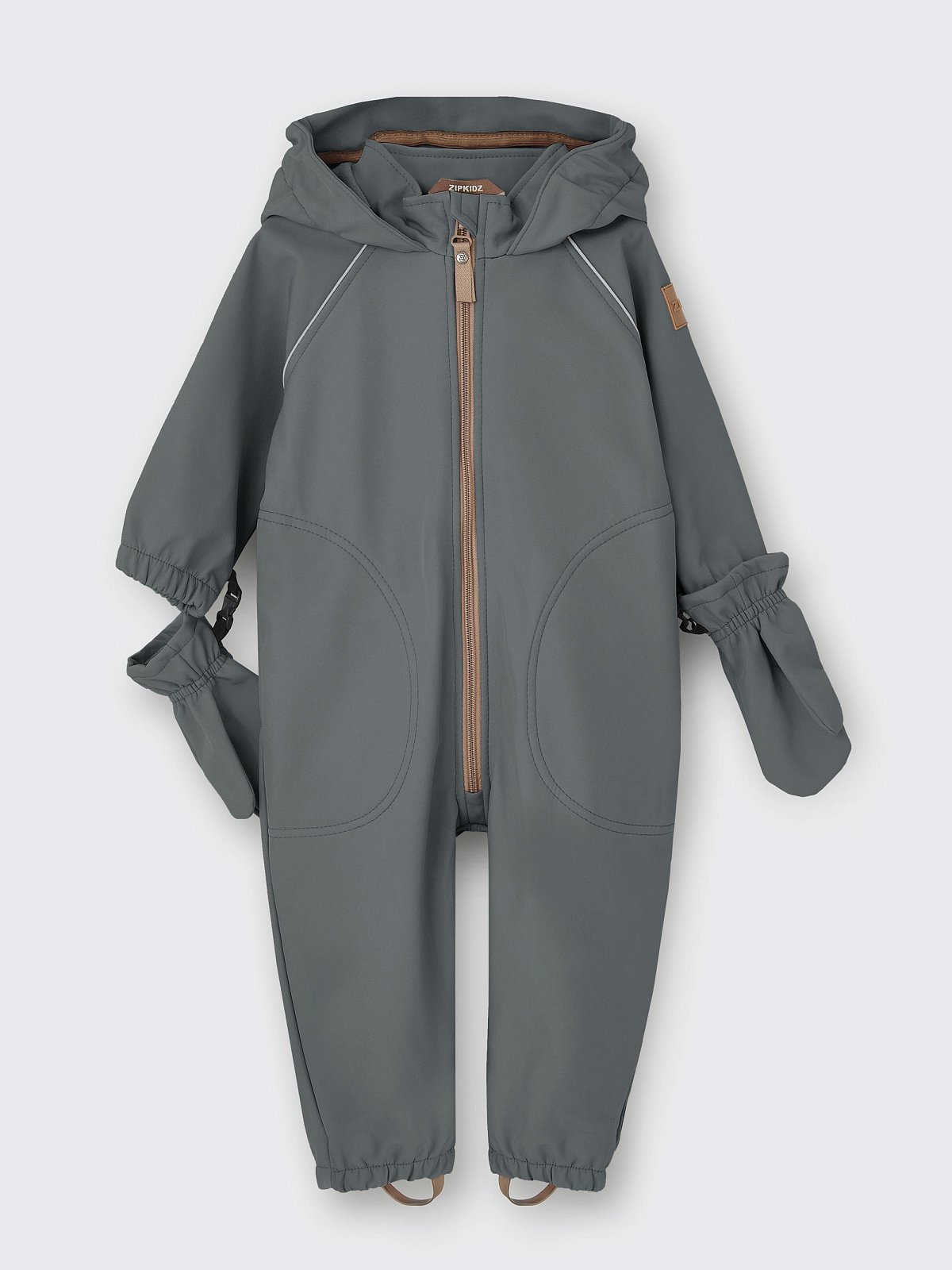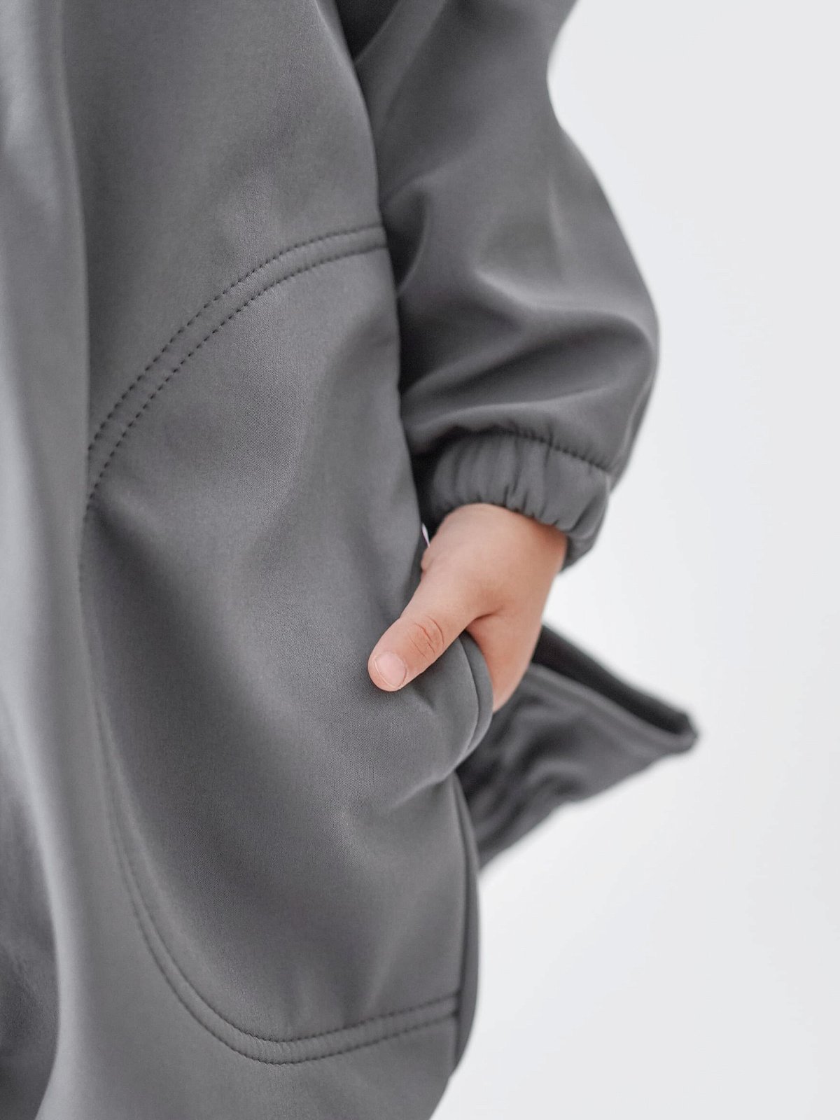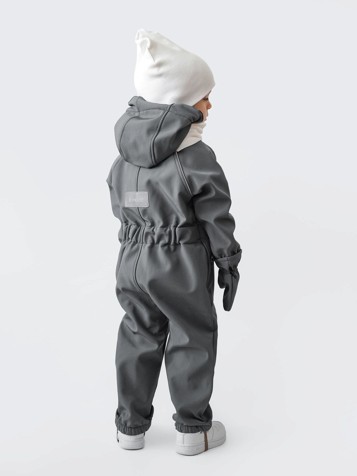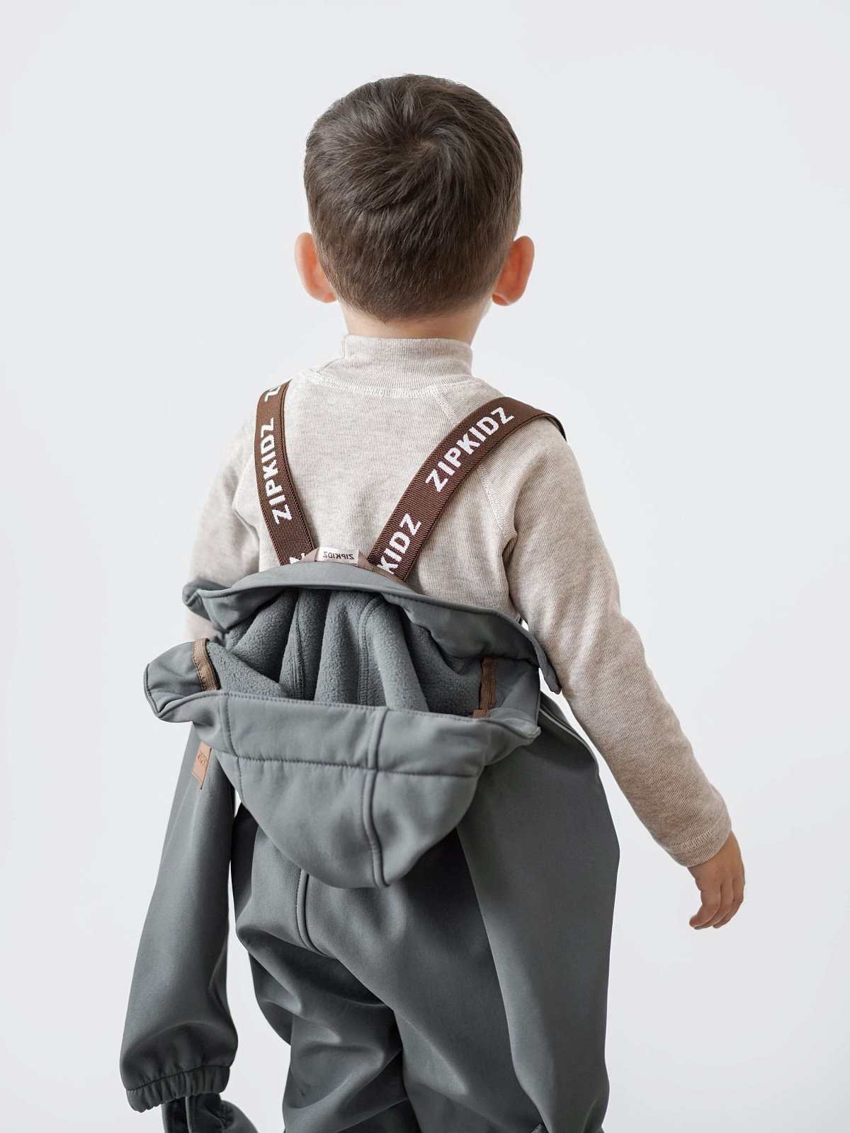 Комбинезон из софтшелла New — практичная одежда для детей от 1 до 10 лет. Изготовлен из многослойного софтшелла с флисовой подкладкой, он защищает от ветра, дождя и холода в диапазоне температур от +5°C до +20°C. Удобные подтяжки, штрипки и варежки, крепящиеся к рукавам, делают его комфортным для повседневного использования.
