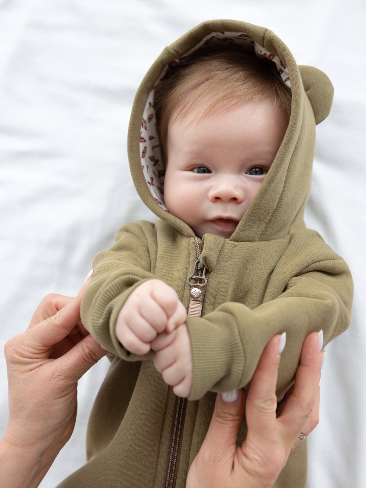 Утепленный трикотажный комбинезон Мишка с флисовым подкладом для новорожденных и детей до 1-1,5 года. Изюминкой данной модельки – милые ушки на капюшоне.