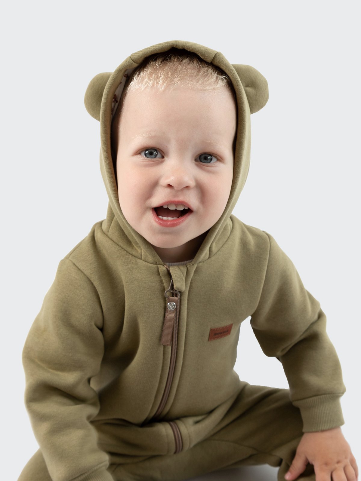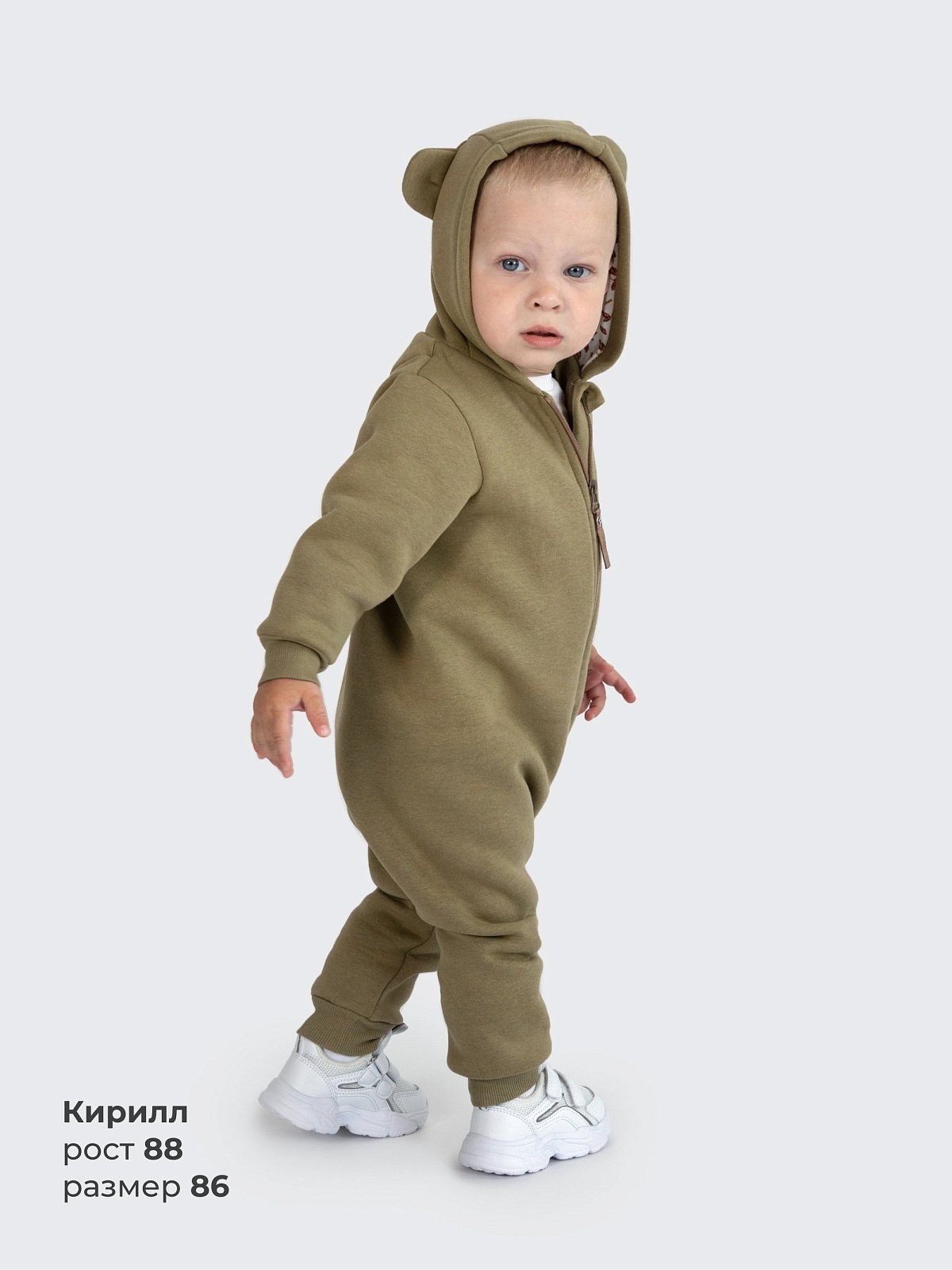 Комбинезон Мишка с начесом, цвет хаки, размер 80