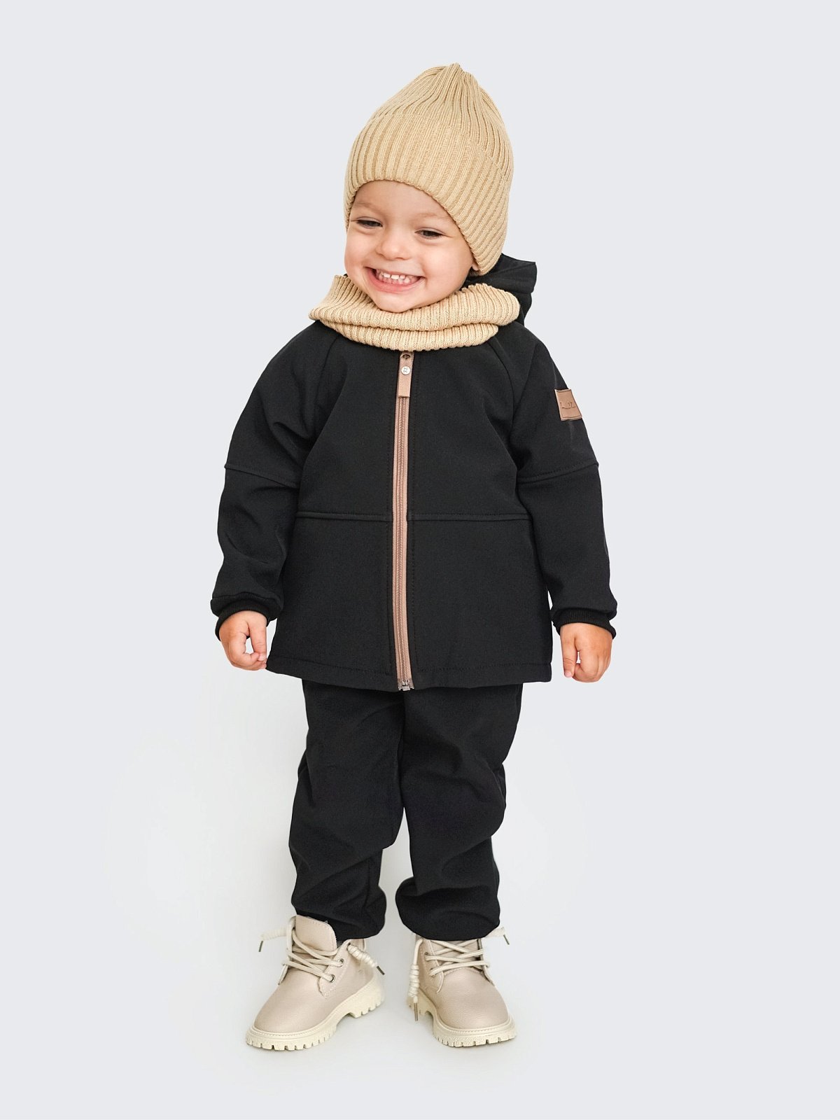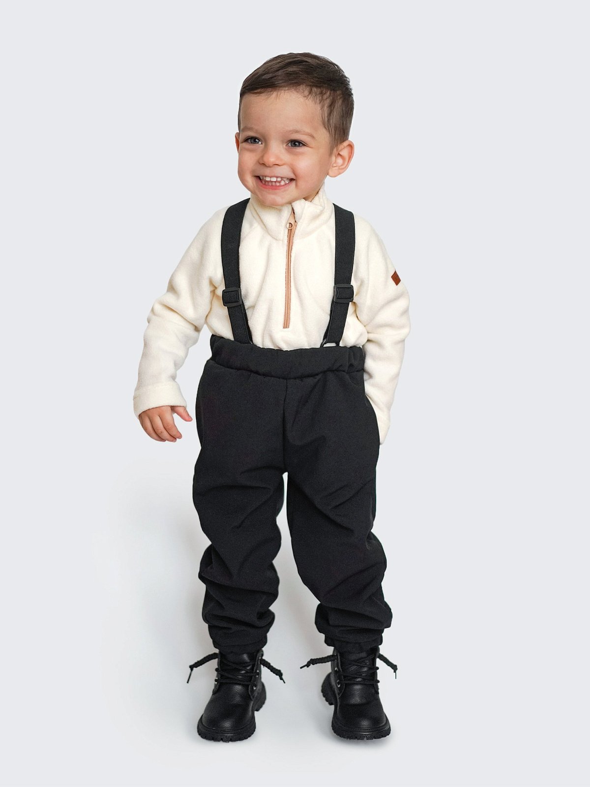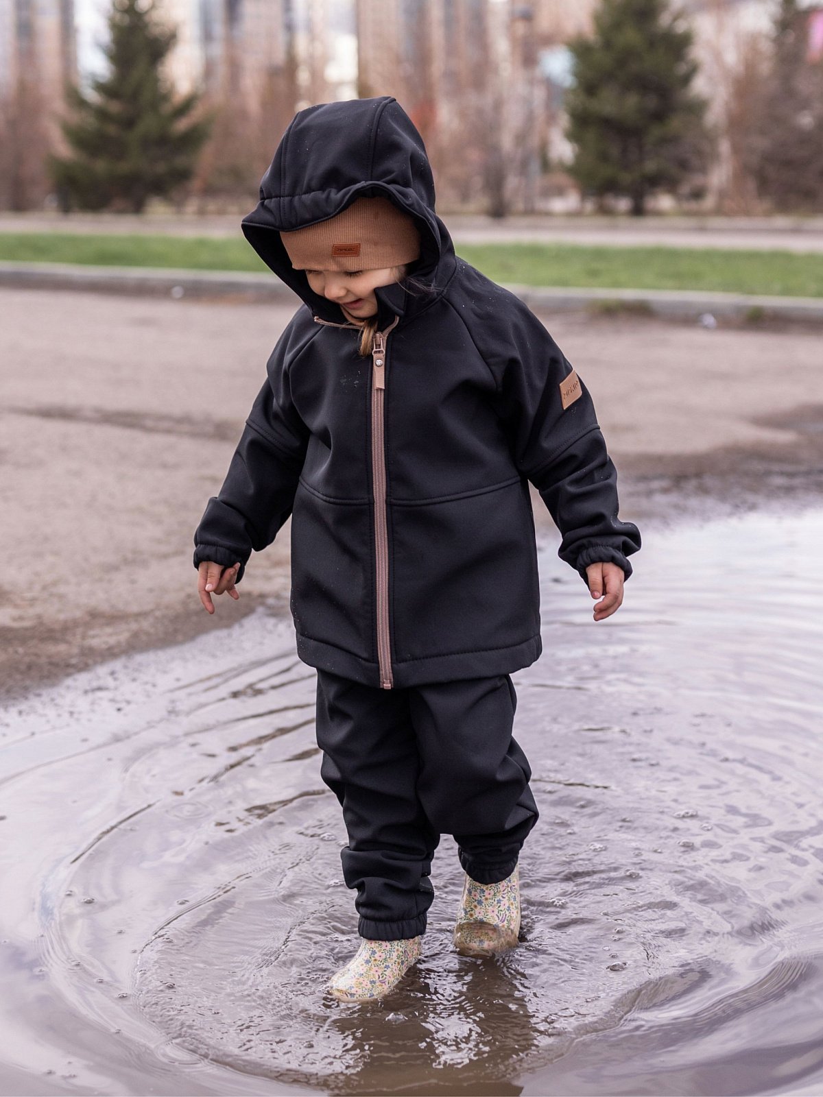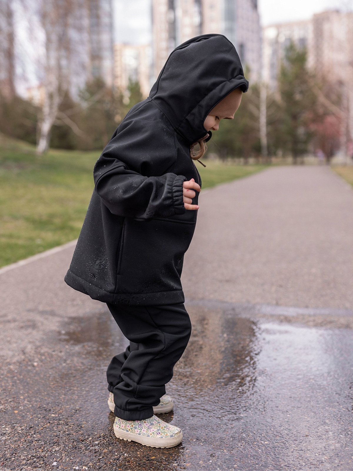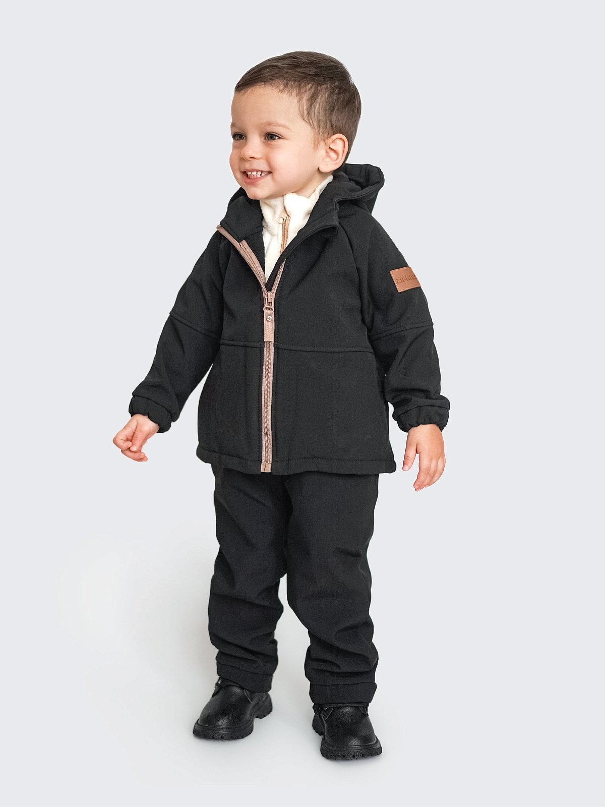 Костюм для мальчиков и для девочек выполнен из водонепроницаемой и непродуваемой ткани Софтшелл.