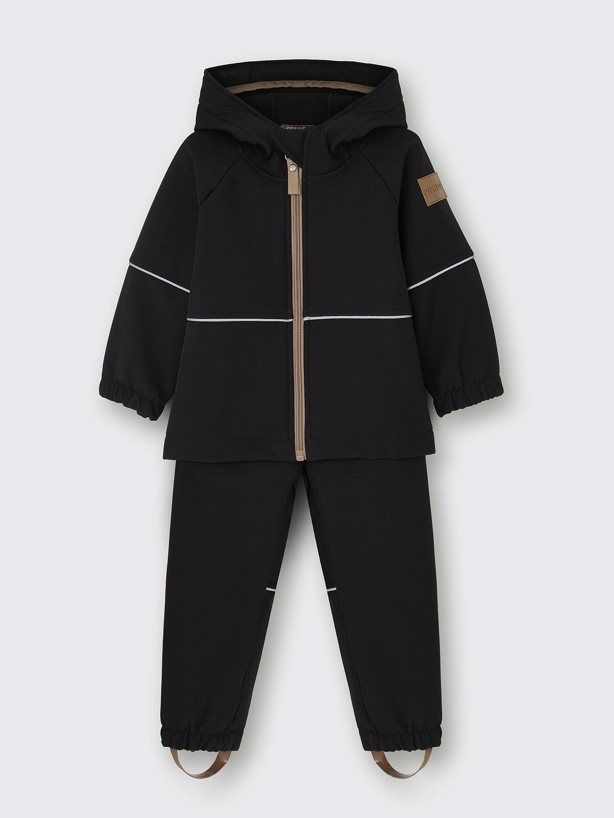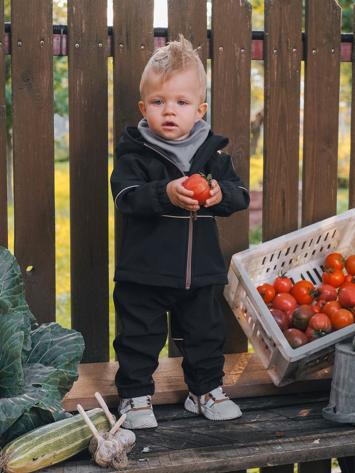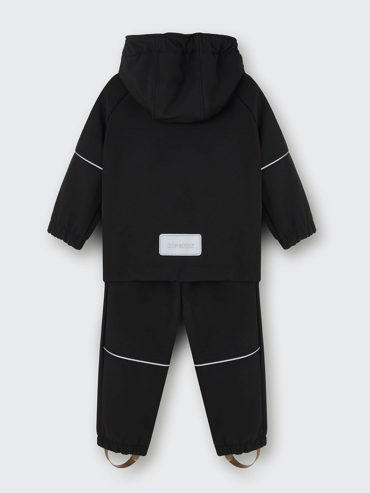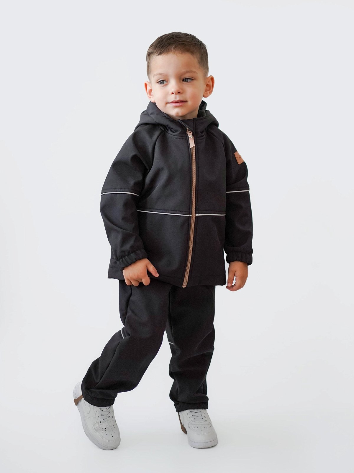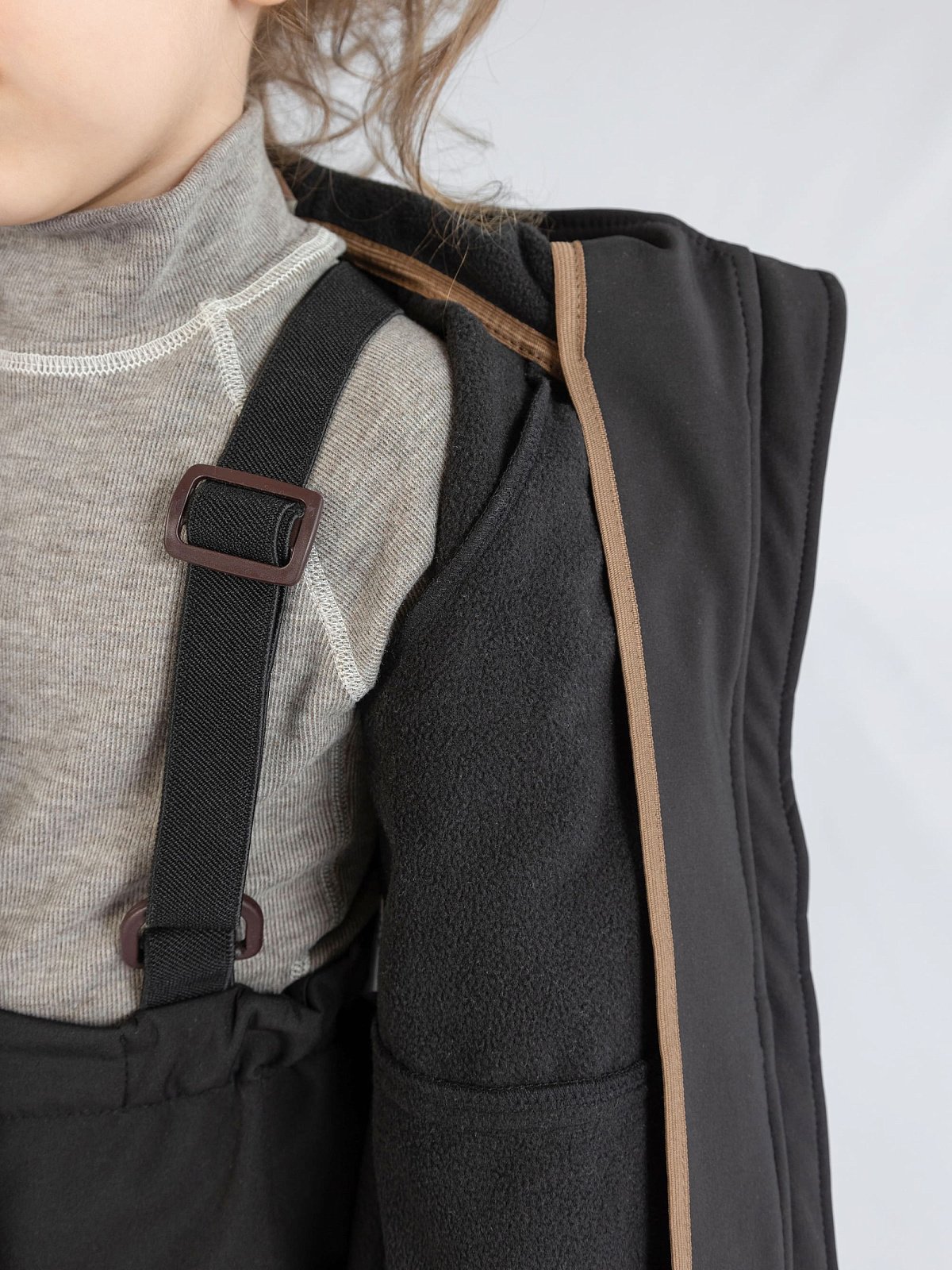 Костюм Даббл Спейс New из софтшелла идеально подходит для детей от 1 до 7 лет. Благодаря высокотехнологичному материалу костюм защищает от ветра и холода, заменяя несколько слоев одежды. Брюки оснащены подтяжками и штрипками, а светоотражающие элементы на проймах и спине обеспечивают безопасность в темное время суток.