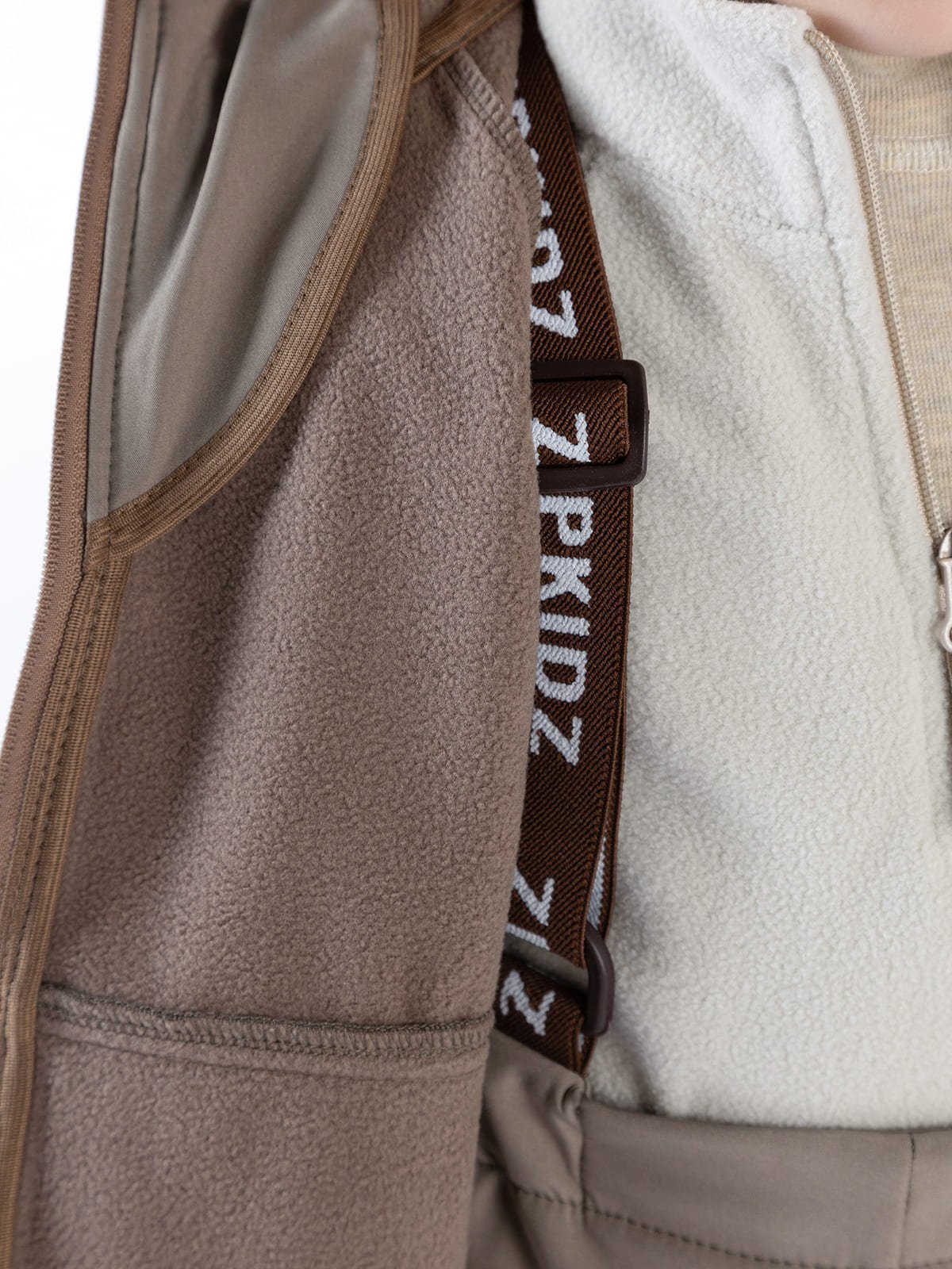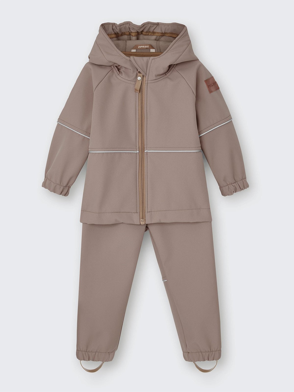 Костюм Даббл Спейс New из софтшелла идеально подходит для детей от 1 до 7 лет. Благодаря высокотехнологичному материалу костюм защищает от ветра и холода, заменяя несколько слоев одежды. Брюки оснащены подтяжками и штрипками, а светоотражающие элементы на проймах и спине обеспечивают безопасность в темное время суток.