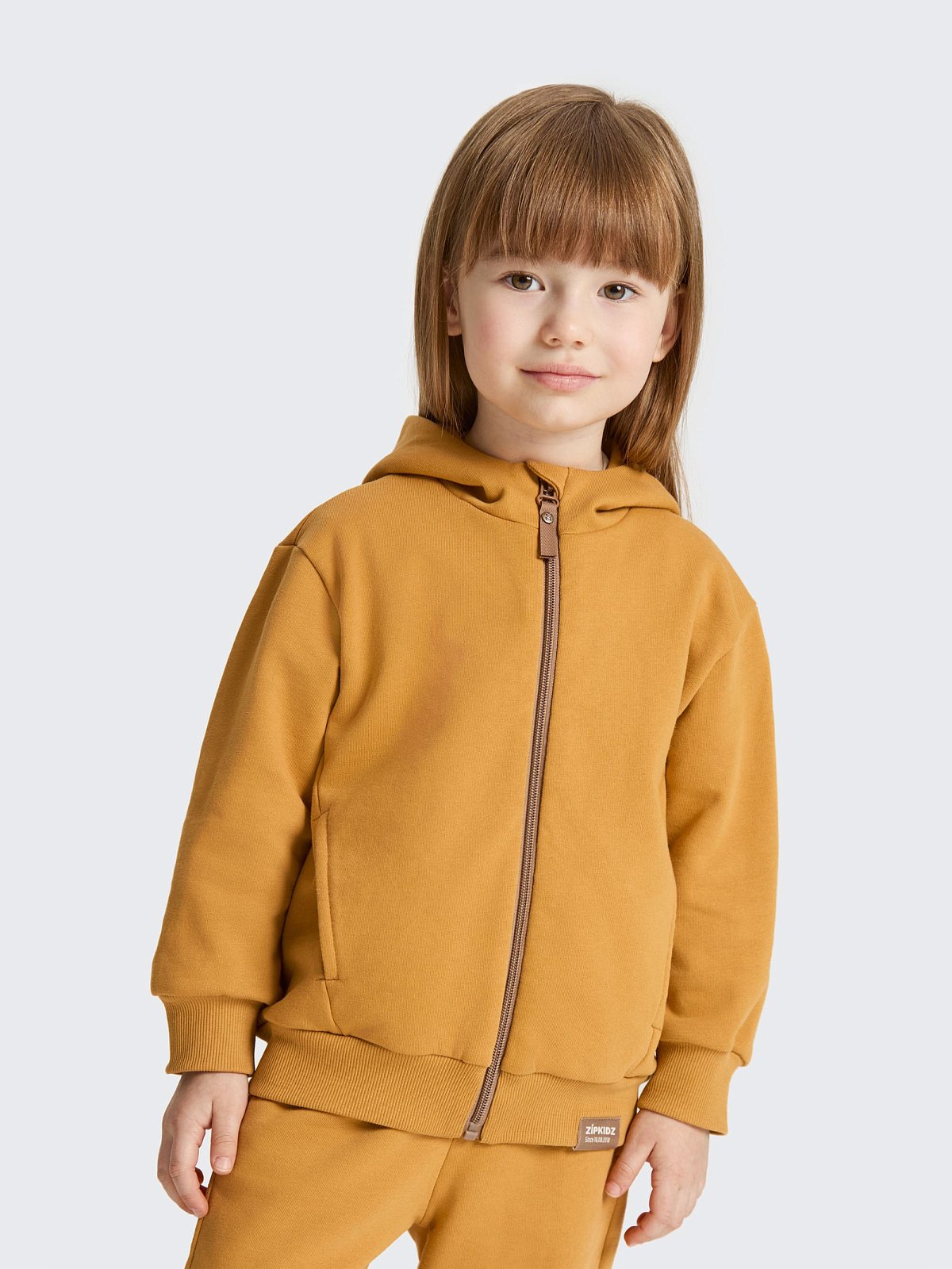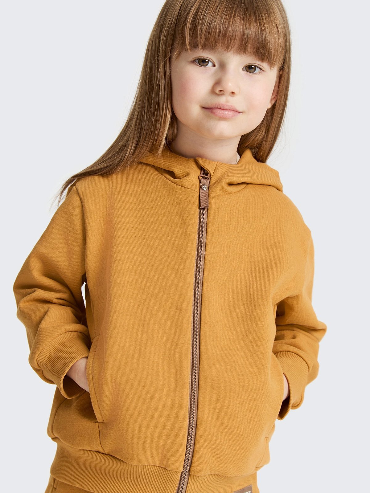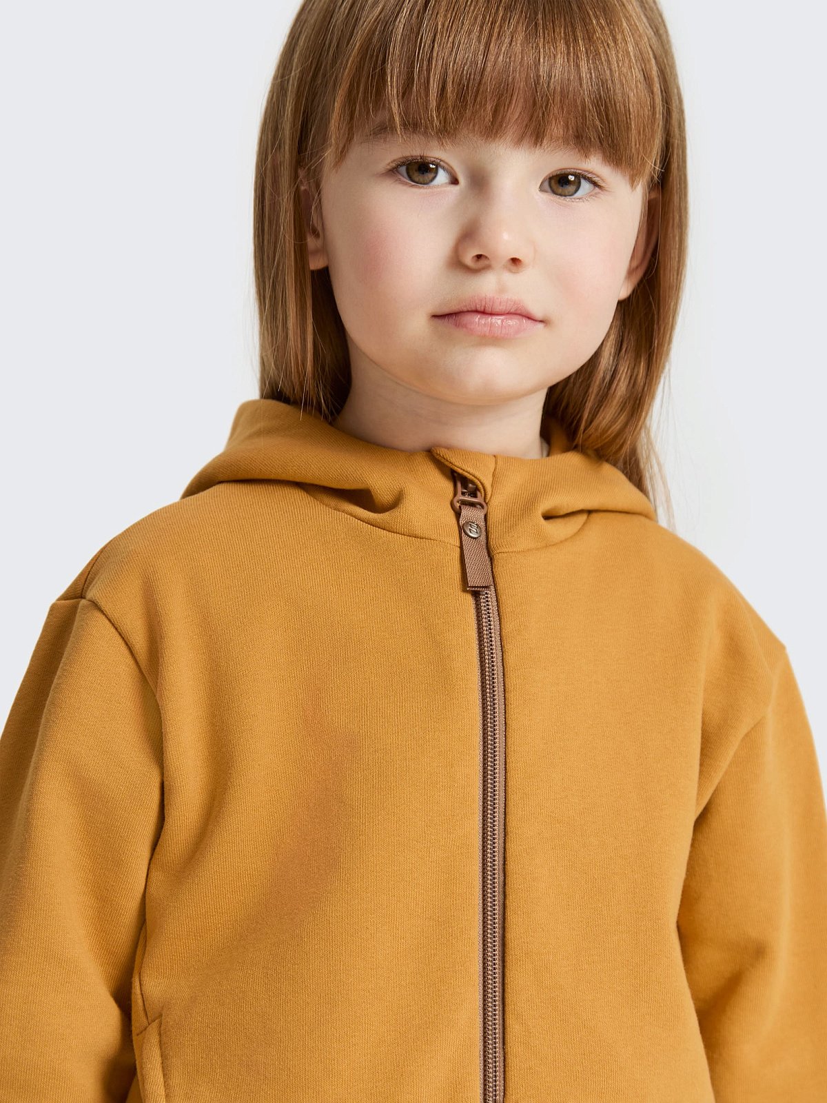 Толстовка застёгивается на молнию — удобно надевать, снимать и регулировать тепло. Глубокий капюшон со стойкой защищает от ветра и делает модель особенно практичной в прохладную погоду. Манжеты на рукавах и по низу изделия выполнены из плотной рибаны, благодаря чему хорошо держат форму и предотвращают попадание холодного воздуха.
