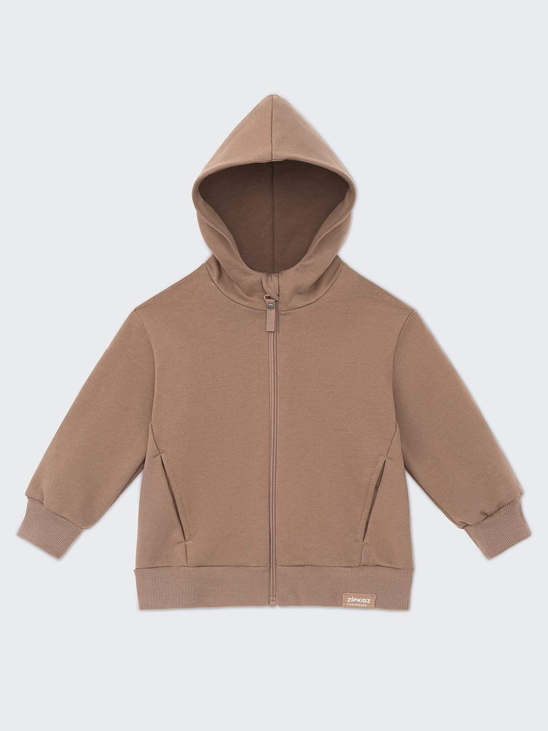 Толстовка застёгивается на молнию — удобно надевать, снимать и регулировать тепло. Глубокий капюшон со стойкой защищает от ветра и делает модель особенно практичной в прохладную погоду. Манжеты на рукавах и по низу изделия выполнены из плотной рибаны, благодаря чему хорошо держат форму и предотвращают попадание холодного воздуха.
