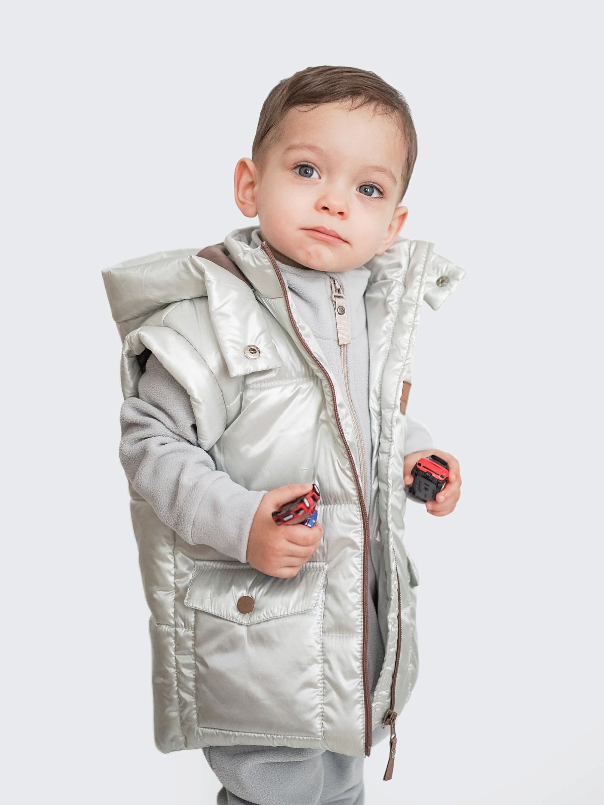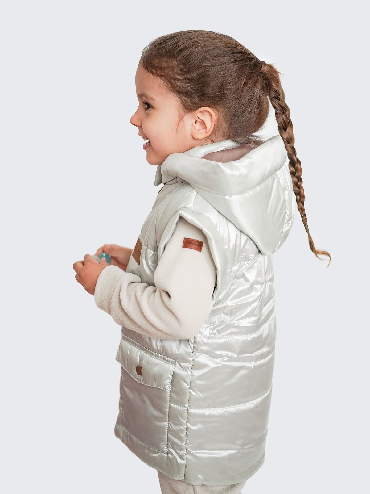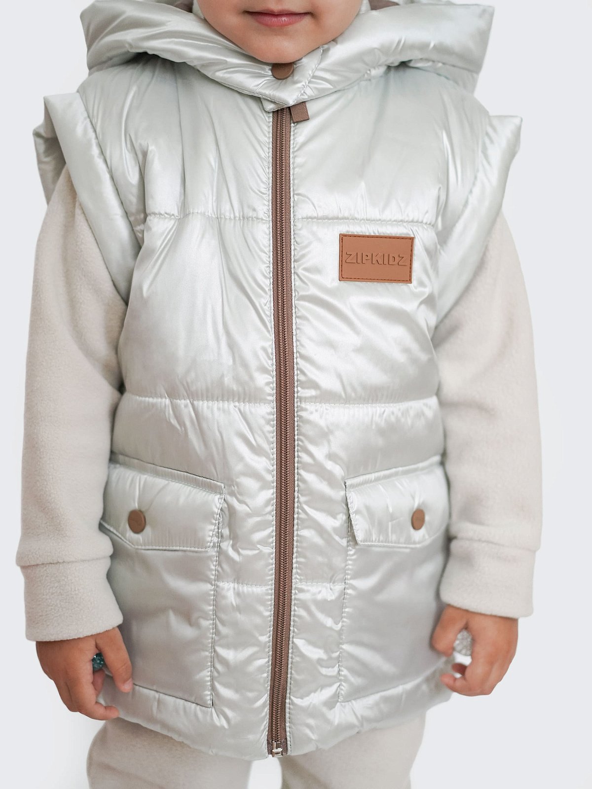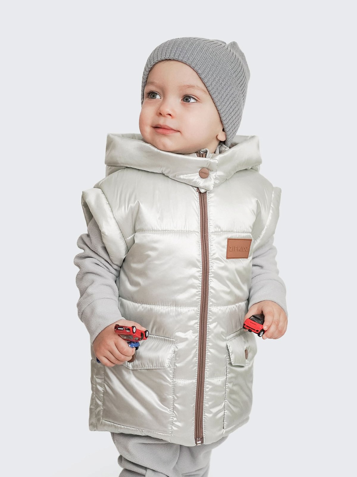 Стильная утепленная детская жилетка с капюшоном для девочек и мальчиков. Идеальна на весну, лето и демисезон. Легкий дутый стеганый болоньевый жилет для малыша от ZipkidZ незаменим в ветреную и дождливую погоду. Верхняя ткань изделия водоотталкивающая и непромокаемая.Воротник стойка и планка по молнии надежно защитят грудь и шею от ветра, а удлиненный низ сзади лучше закроет спину.